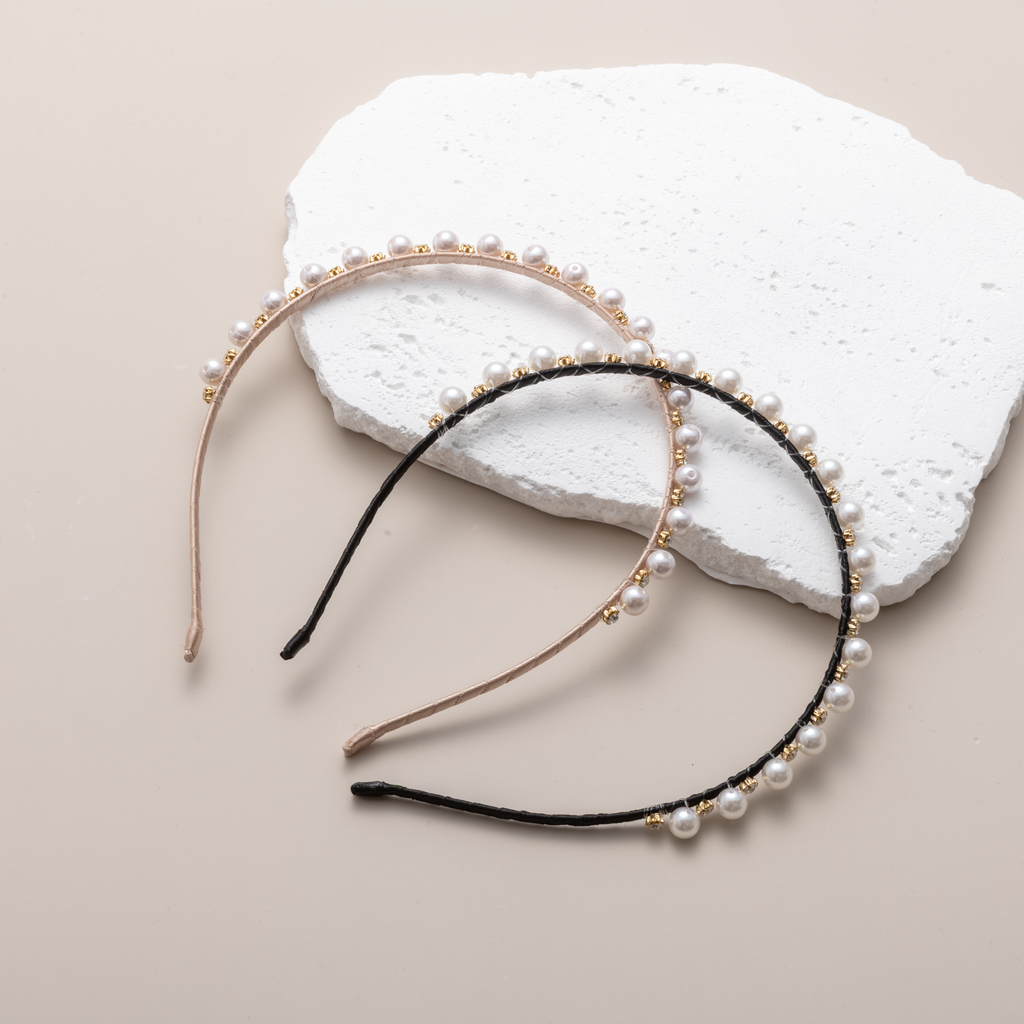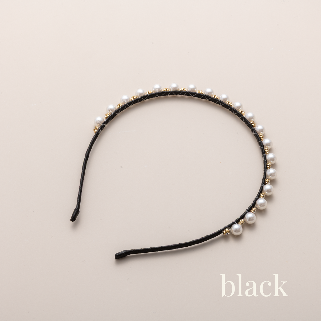 上質なパールと煌めくビジューを贅沢にあしらった、大人可愛いカチューシャ。